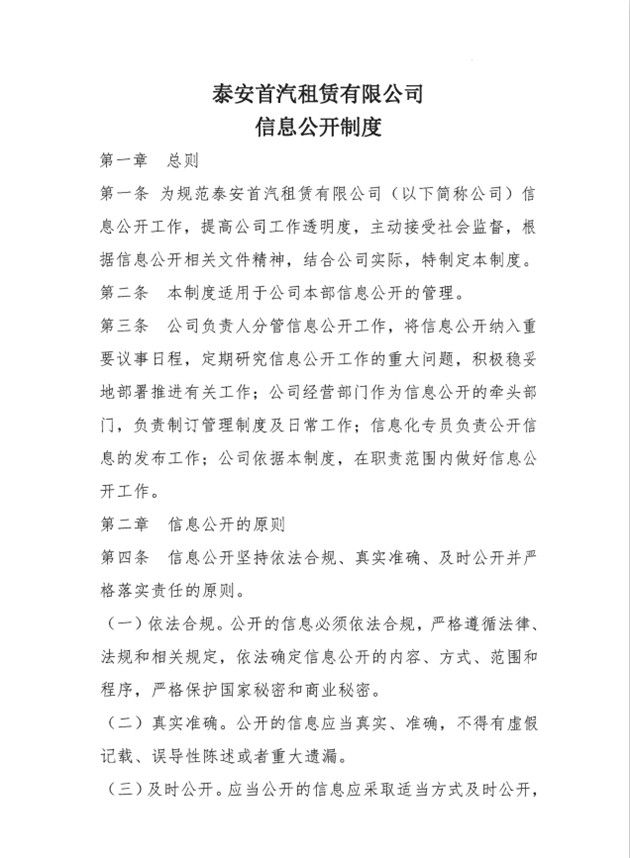 泰安首汽租賃有限公司信息公開(kāi)制度